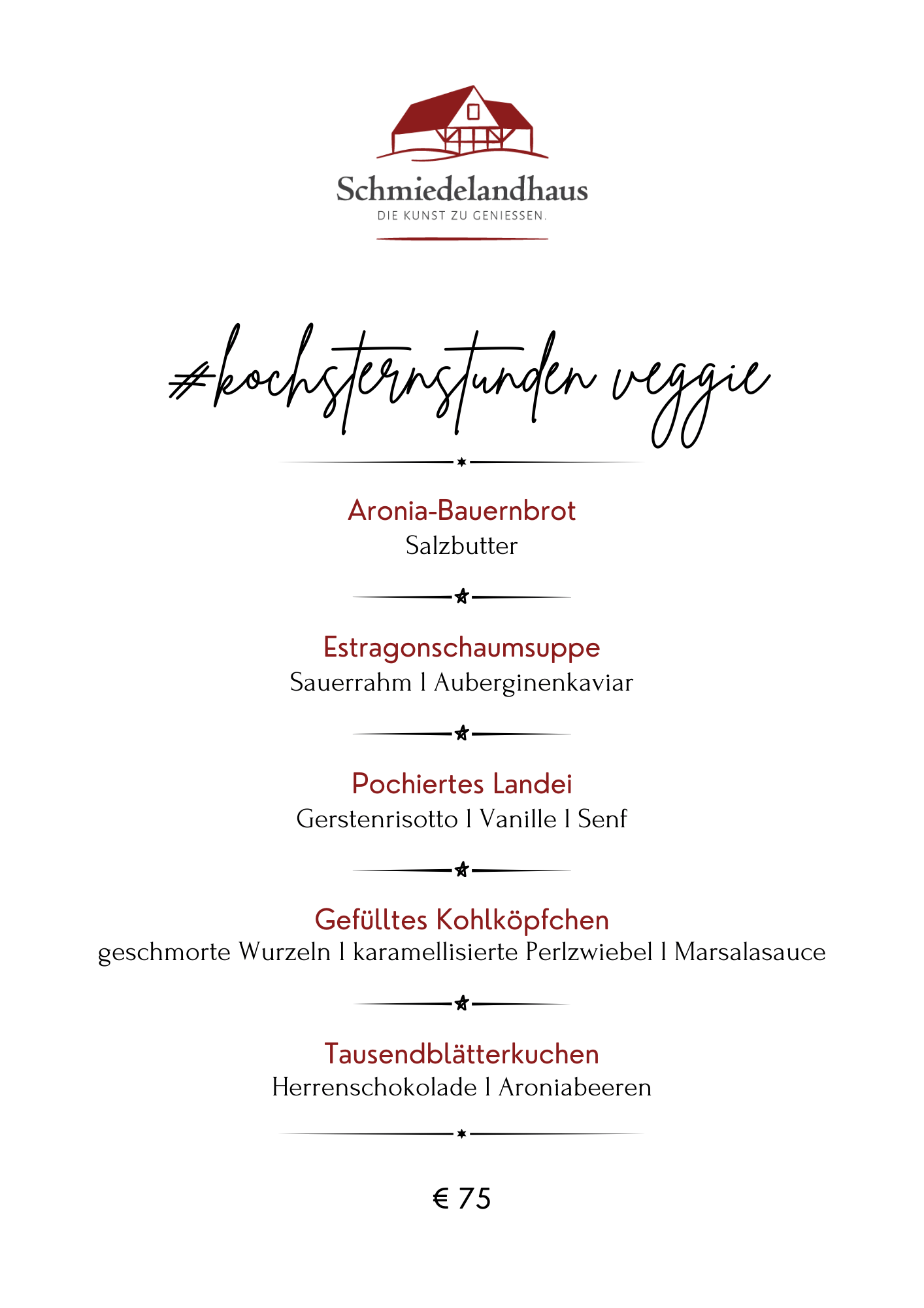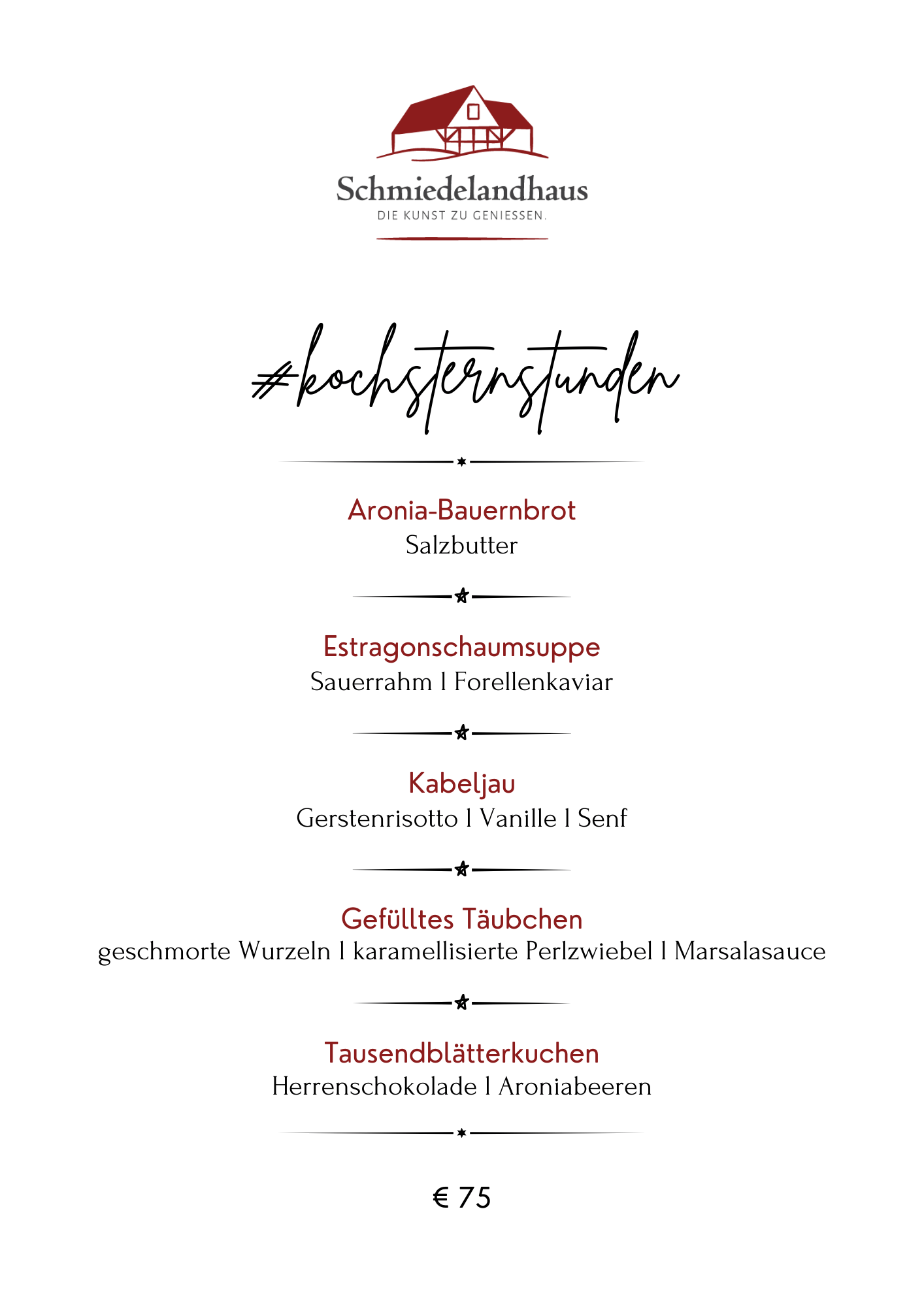Reservierungen telefonisch oder online mit dem Kommentar `Kochsternstunden`.