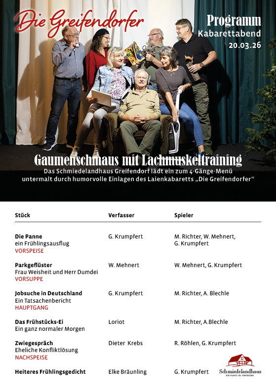 Das Schmiedelandhaus Greifendorf lädt ein zu einem Kabarettabend mit der Laienkabarettgruppe „Die Greifendorfer“